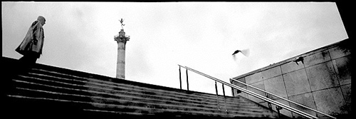 The photograph above is the first panoramic image I have ever taken in France, straight out of the plane, walking out of La Bastille subway station on a cold and gray winter morning of 2000.